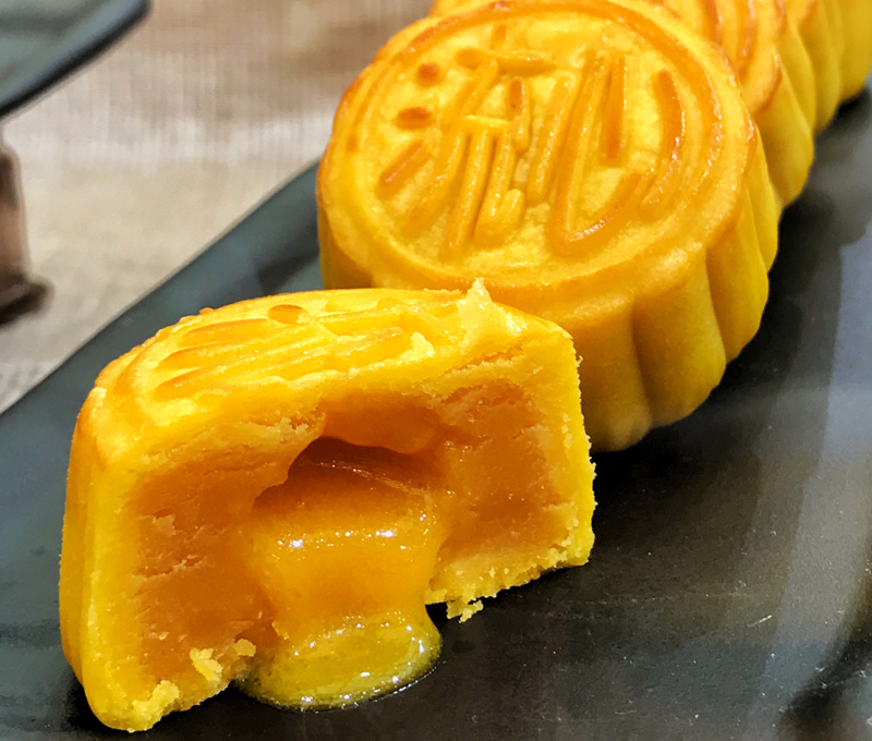 成鴨蛋黃:選用洞庭湖出產的新鮮鴨蛋,通過四十多天的精制,蛋黃色澤油潤。用“烘生黃”這一先進工藝而制作出來的月餅,蛋黃成熟后油潤、松化,蛋黃的醇香、蓮蓉的清香交融,相得益彰。